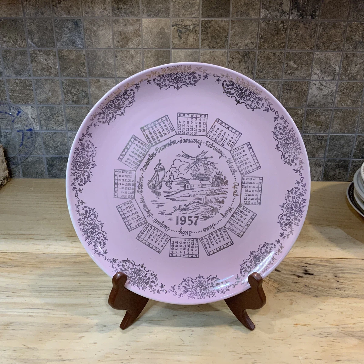 1957 Calendar Plate Taylor Smith Taylor 10 Pink Gold Mcm Astrology Zodiac Ebay